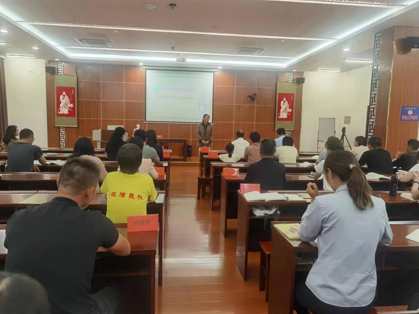 启蒙班张畯晨妈妈提出自己在学习国学中的困惑,启智一班芳圆老师给与解答,学习国学就是引导孩子学会自信,学会发扬自己的长处和优点,日常中看好的、听好的、做好的,哪有不成功的道理,学习经典就是听话、真干,认可自己前后的长进以此来建立自信,活到老学到老,把终身学习落实到实处,家长认同了,孩子自然就舒服了,也就循序渐进的学会了吃苦,慢慢有了自信,为孩子的长远发展奠基。尼山书院赵学德老师为家长们解疑答惑,并详细讲解了《了凡四训》。