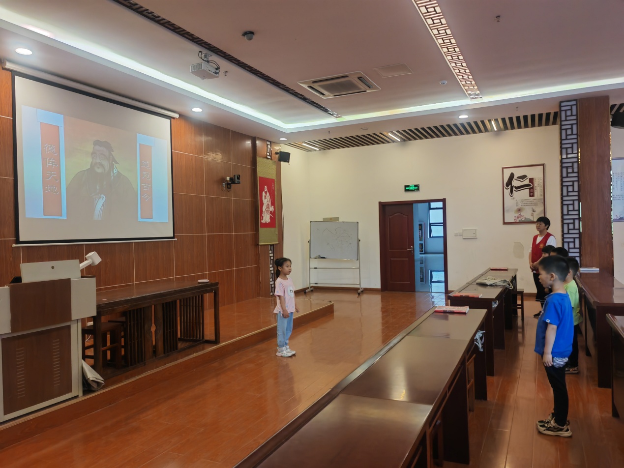 下午2点10分,同学们在家长的带领下来到二楼国学堂,早到的同学接龙领读《孟子》做课前收心。