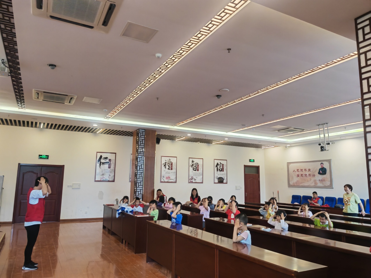 为了课间的安全,分别由两位志愿者家长维持孩子去洗手间里有秩序地喝水,张惠老师维持教室秩序。课间带领大家玩游戏。
