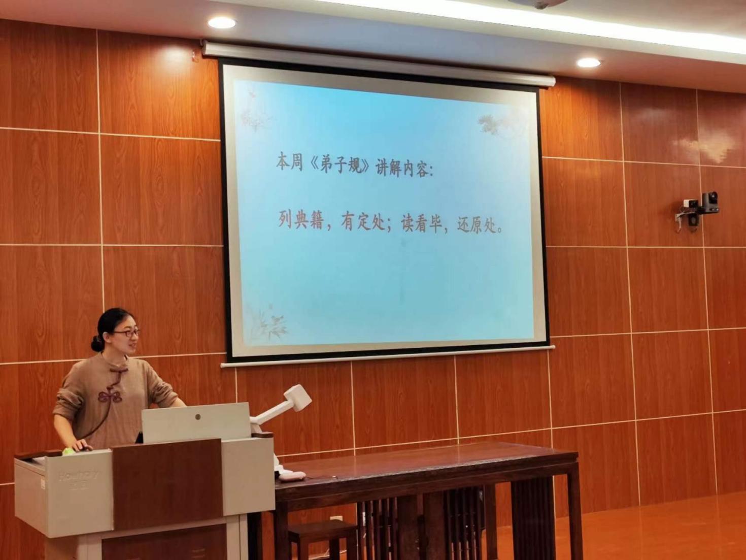 本周《弟子规》讲解内容为“列典籍,有定处;读看毕,还原处”。王芳圆老师通过多个方面讲解,让同学们理解了这句话的深层次含义,并由此引申出提高学习效率等方面课题让同学们去思考、领悟,以此引导同学们将《弟子规》融入到日常生活、学习当中去。