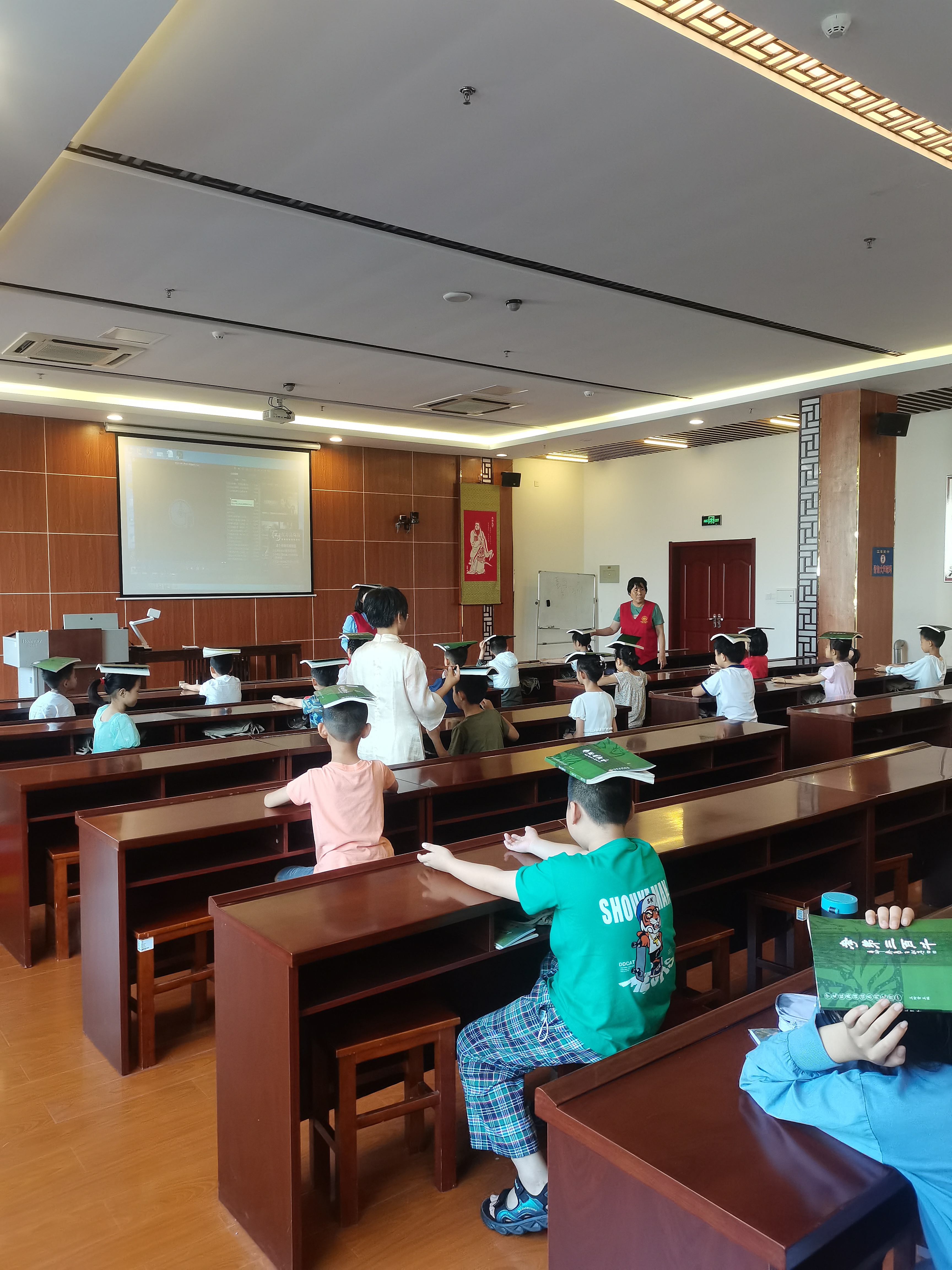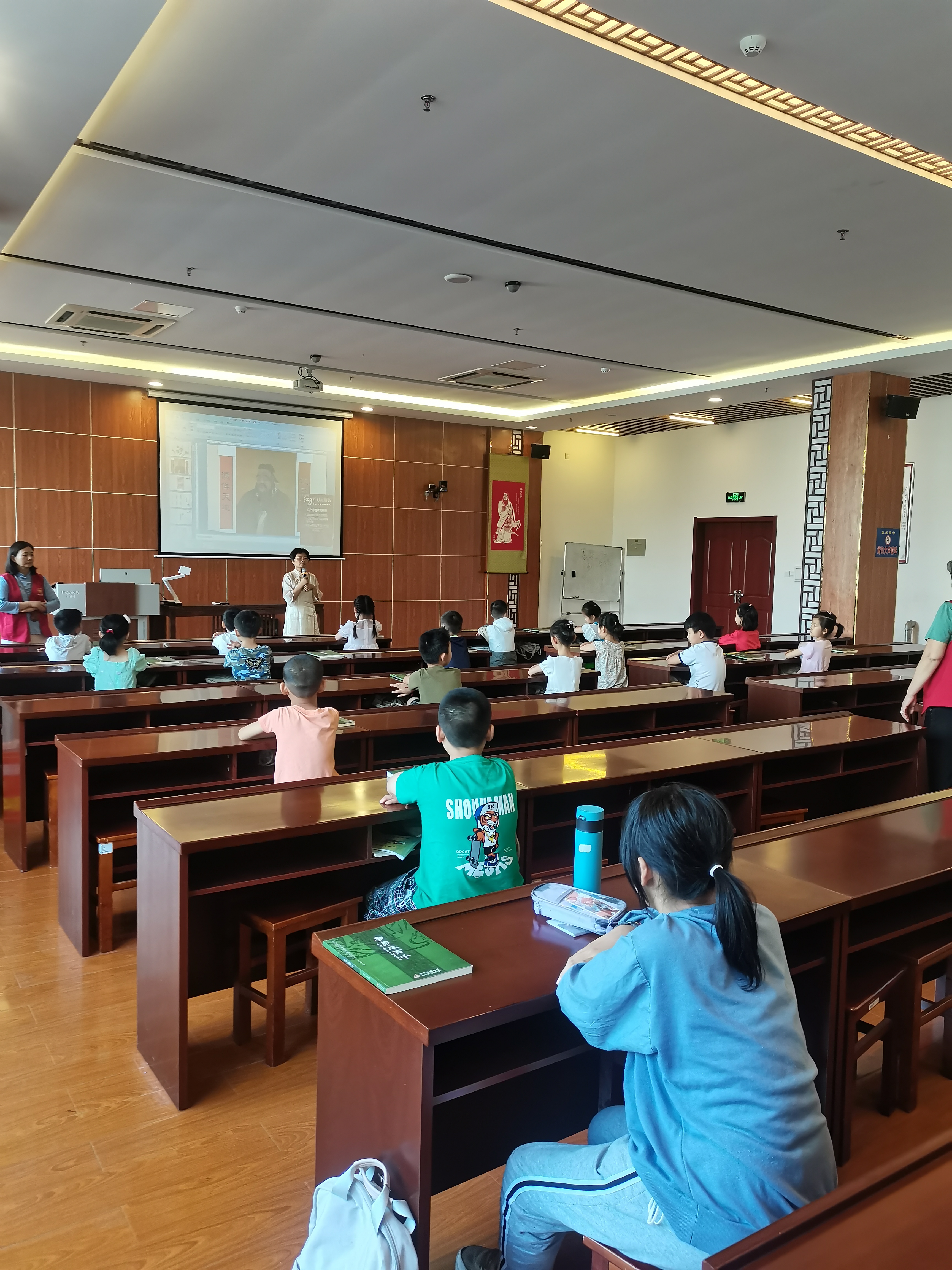 上午8点10分签到,同学们在家长的带领下来到二楼国学堂,早到的同学开始吟诵《千字文》做课前收心。