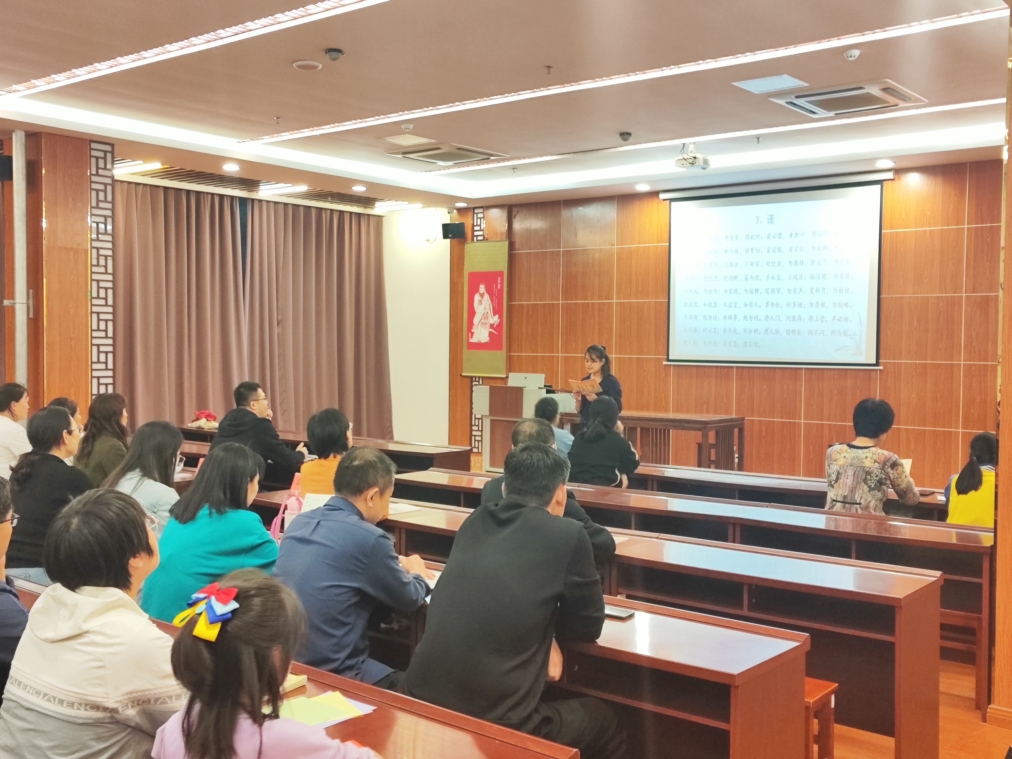 首先,徐校长从育子的方法展开讲解,通过亲子共读引申出我们为什么要多读经典、什么是经典以及经典的分类,让家长们对我们的传统国学经典有了更加详细和清晰的了解。