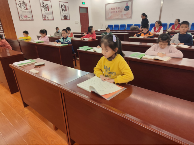 下午2点10分,同学们在家长的陪伴下陆续来到书院,开启了本周六的国学学习之旅。早到的同学轮流领读《论语》。